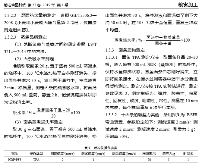 2019年,四川东方主食产业技术研究院研究人员在国内食品期刊《粮食食品科技》在线发表了题为“马铃薯全粉对面条品质影响的主成分分析研究”的研究论文。在该论文中,研究人员使用上海腾拔Universal TA质构仪测定面条硬度、弹性、回复性、咀嚼性、粘性和拉伸特性等指标。
