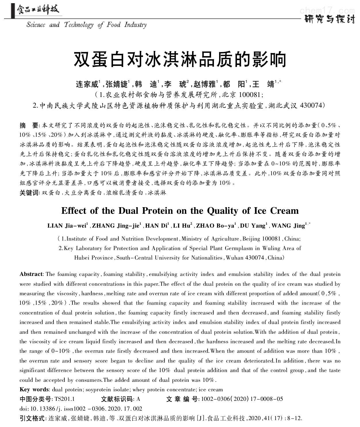 全文下载链接:双蛋白对冰淇淋品质的影响