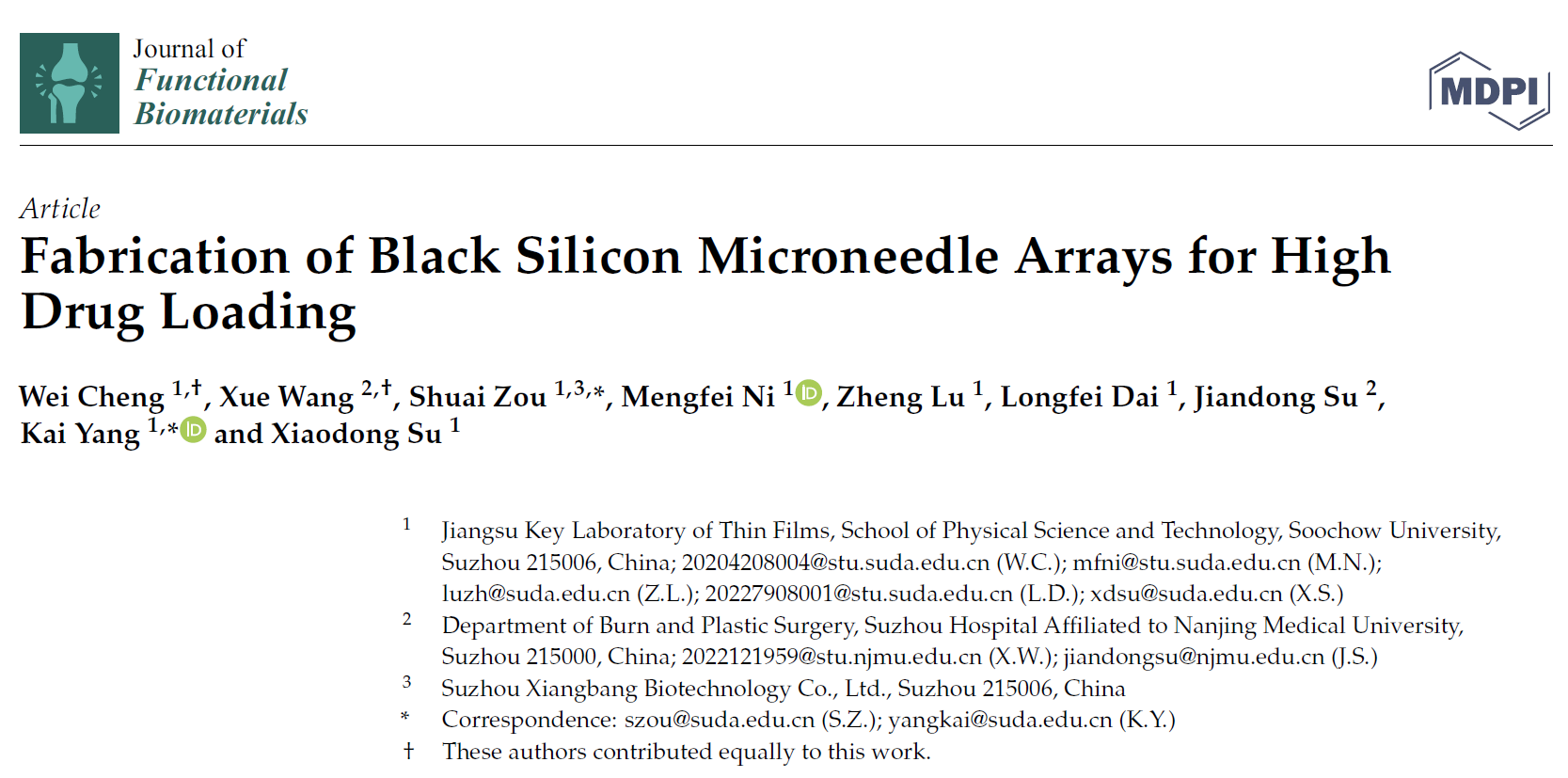 当前位置:首页技术文章上海腾拔质构仪助力苏州大学发表硅微针的国际期刊研究论文